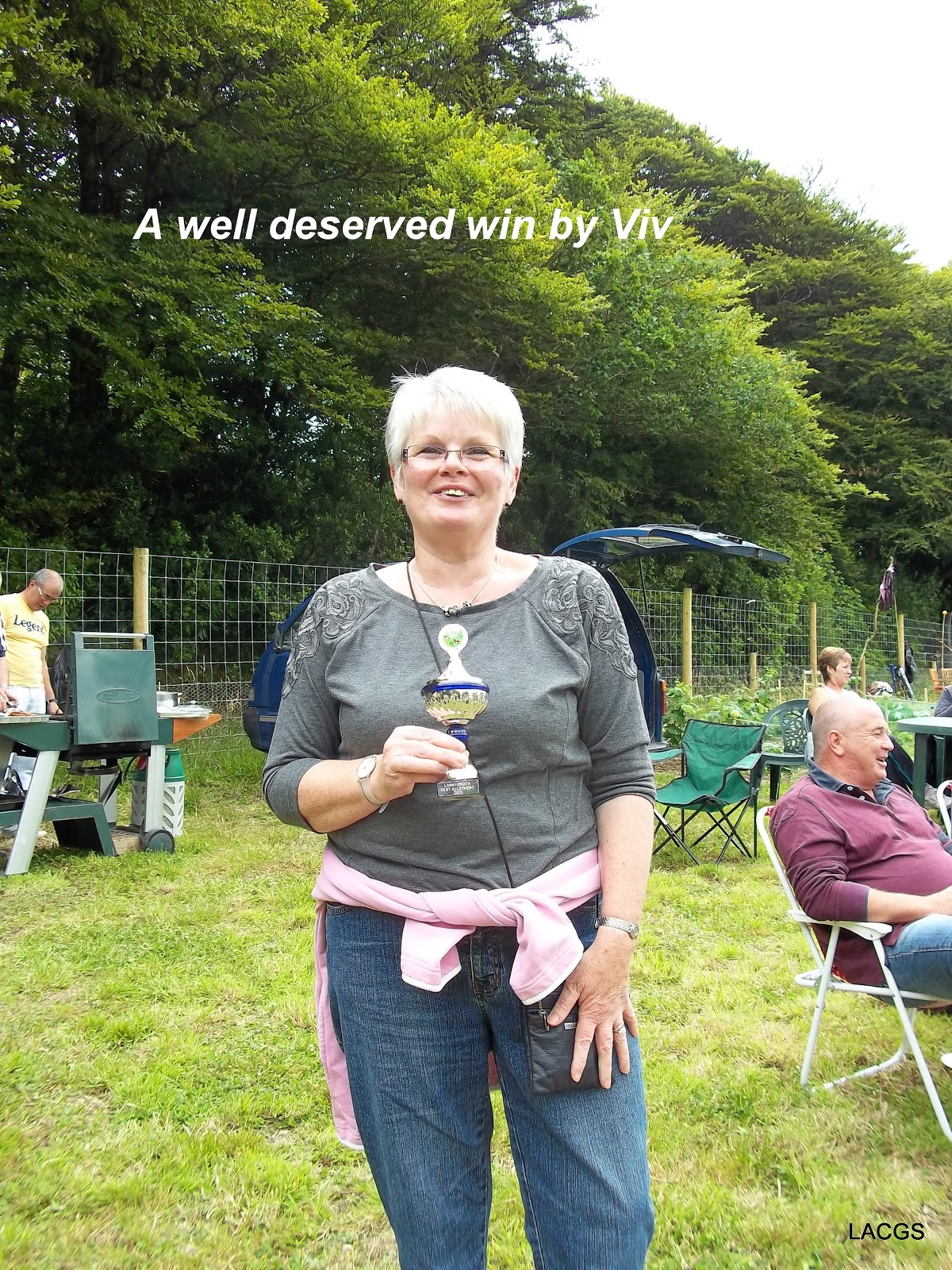 Weather has been not been good recently and it seems to be in sympathy with how a lot of us from the allotments feel at the moment.   Last weekend, after a relatively short illness, we lost a very good friend.   I personally had only known Viv since taking on the plot but she was always cheerful and ready to help anyone anytime.   We will all miss her smiling face and readiness to chase you for raffle tickets at the BBQs.   She won the prize for the best plot two years running and so it's been decided that in future the cup awarded for the best plot will be the 'Vivienne Brock Memorial Cup'.